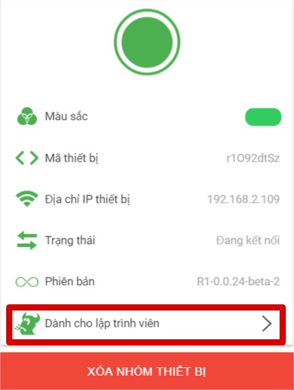 Tất cả thiết bị iNut đều hỗ trợ Rest API, các bạn có thể lấy mã dành cho nhà phát triển tại mục cài đặt như sau: