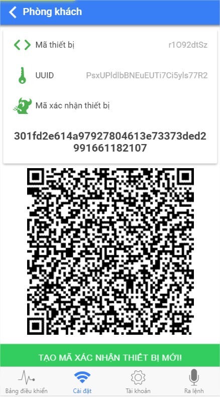 Bạn sẽ sử dụng 3 khóa: node_id, uuid, token để có thể truy cập thiết bị của mình. Trong đó, có 2 khóa tĩnh là: node_id và uuid, còn khóa token là khóa động, bạn có thể thay đổi trong tương lai (lúc cần thiết). Ngoài ra, đối với các sản phẩm dựa trên iNut Platform, các bạn có thẻ quét mã QR Code ở trên để thêm thiết bị vào phần mềm bạn nhé. Để tiện cho việc phát triển, bạn nhấn vào ảnh QrCode hoặc mã token để copy mã 3 khóa vào bộ nhớ đệm nhé.